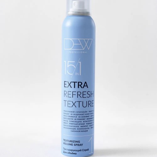 Dew Professional Extra Refresh Texture 15 в 1 – это незаменимый текстурирующий спрей объема для волос, предназначенный для создания идеальной укладки и придания вашим волосам дополнительного объема. Объем одной упаковки составляет 200 мл и экономично расходуется, что гарантирует длительное использование и возможность наслаждаться эффектом густых, живых волос каждый день.